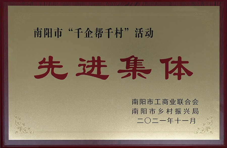 公司荣获南阳市“千企帮千村”活动先进集体荣誉称号。