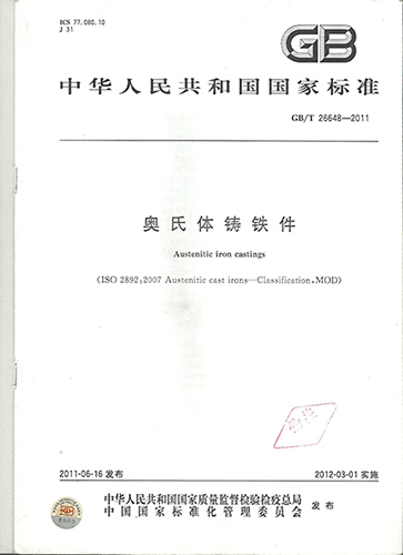 主持制定《奥式体铸铁件》国家标准