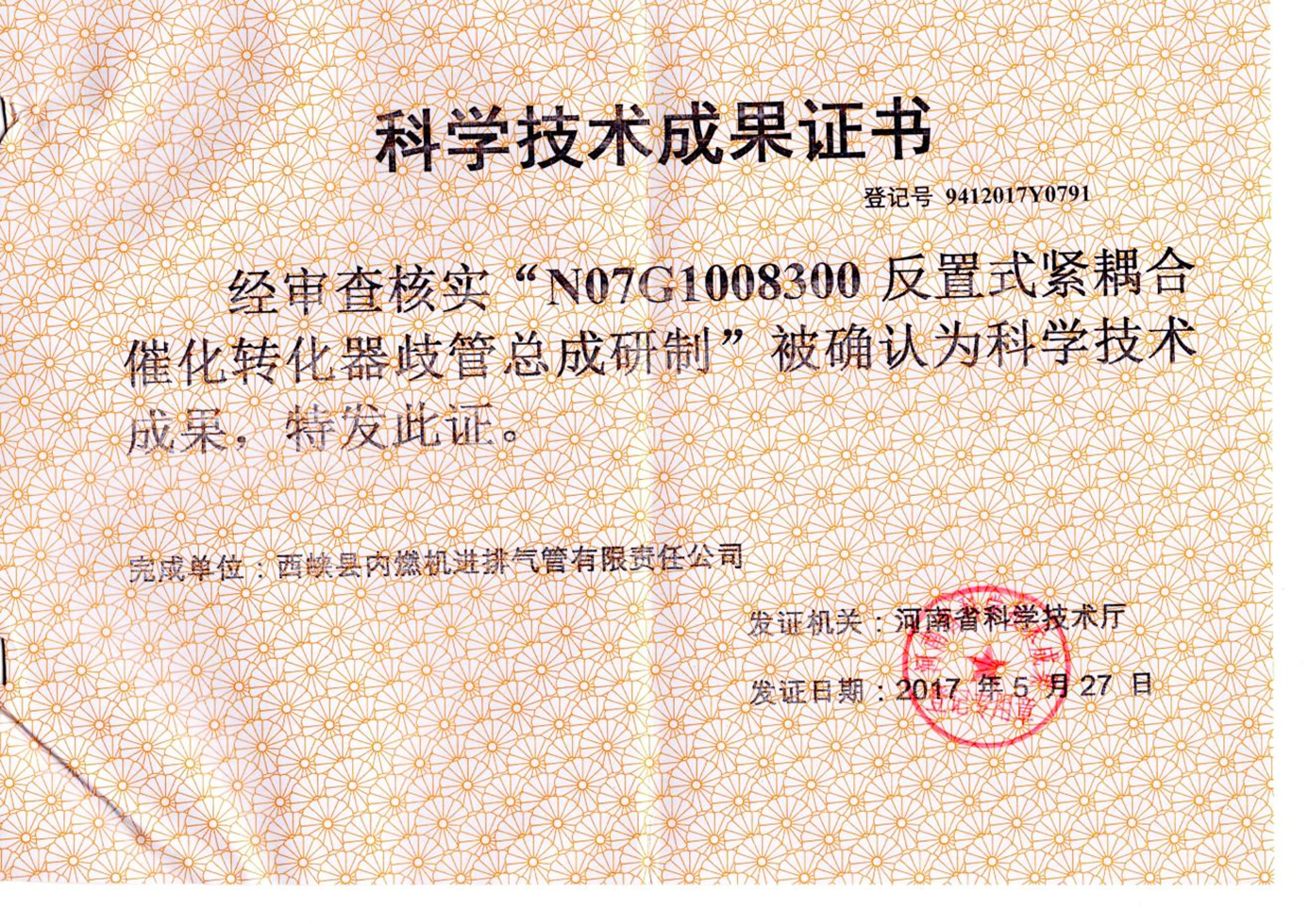 N07G1008300反置式紧耦合催化转化器歧管总成研制