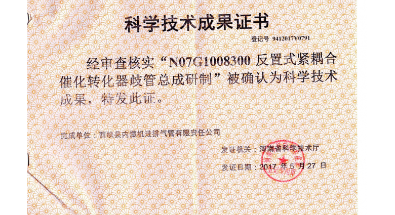 N07G1008300反置式紧耦合催化转化器歧管总成研制