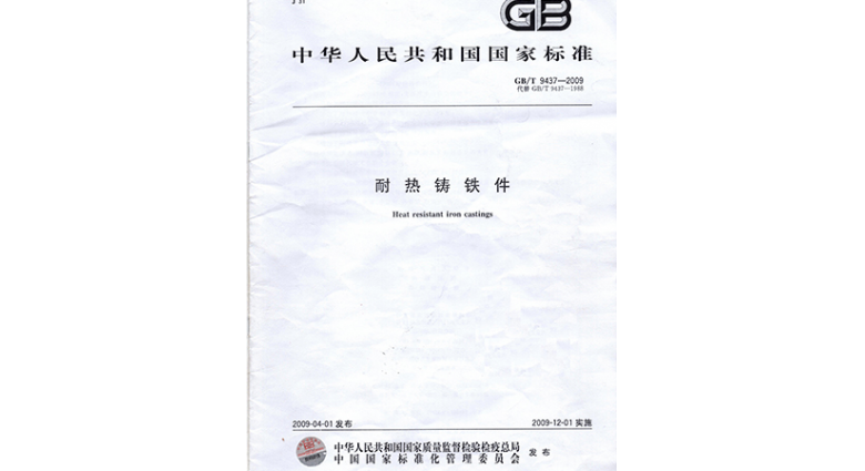 主持制定《耐热铸铁件》国家标准